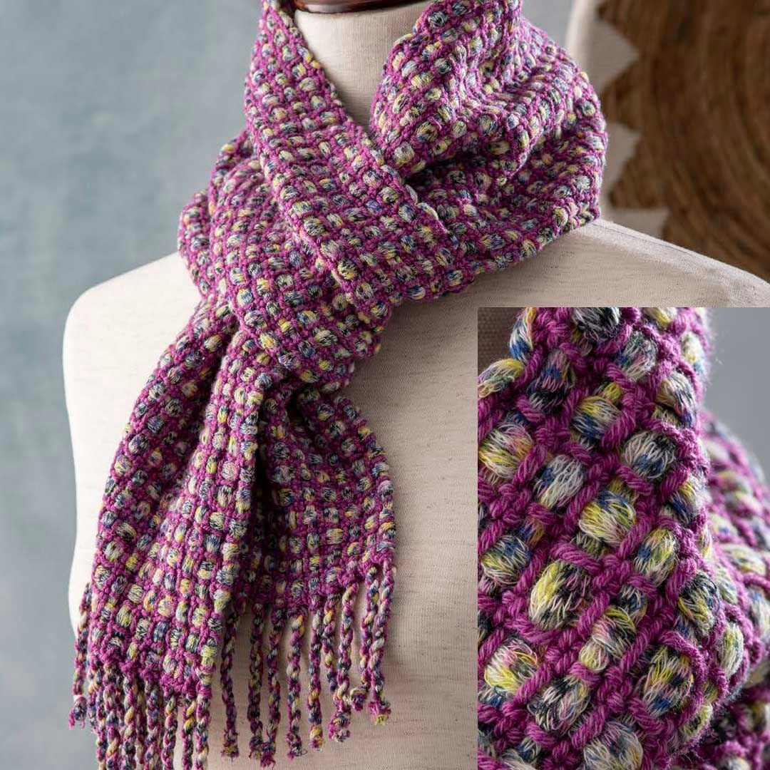 Nancy Peck’s Bumple Scarf looks complicated, but it is actually simple to weave! Photo credit: Matt Graves