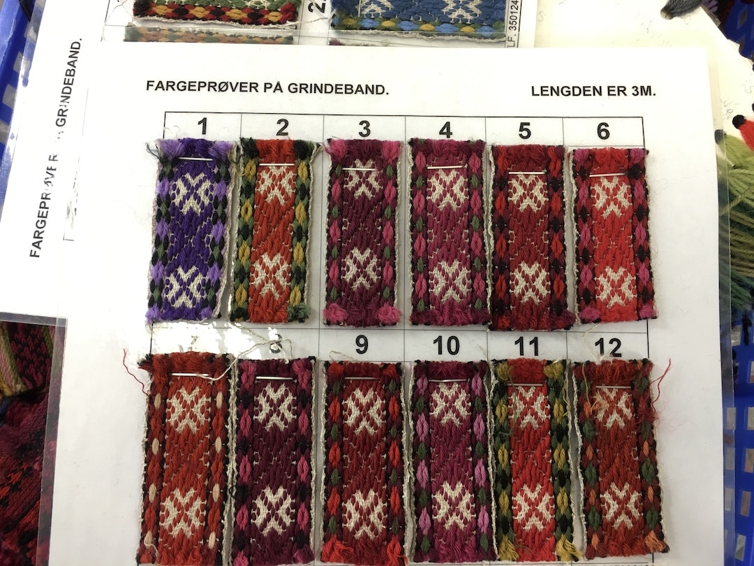 Joan saw these examples of Baltic pick-up in a bunad shop in Norway. Notice the difference in thickness between the warp and weft. Photo by Joan Sheridan