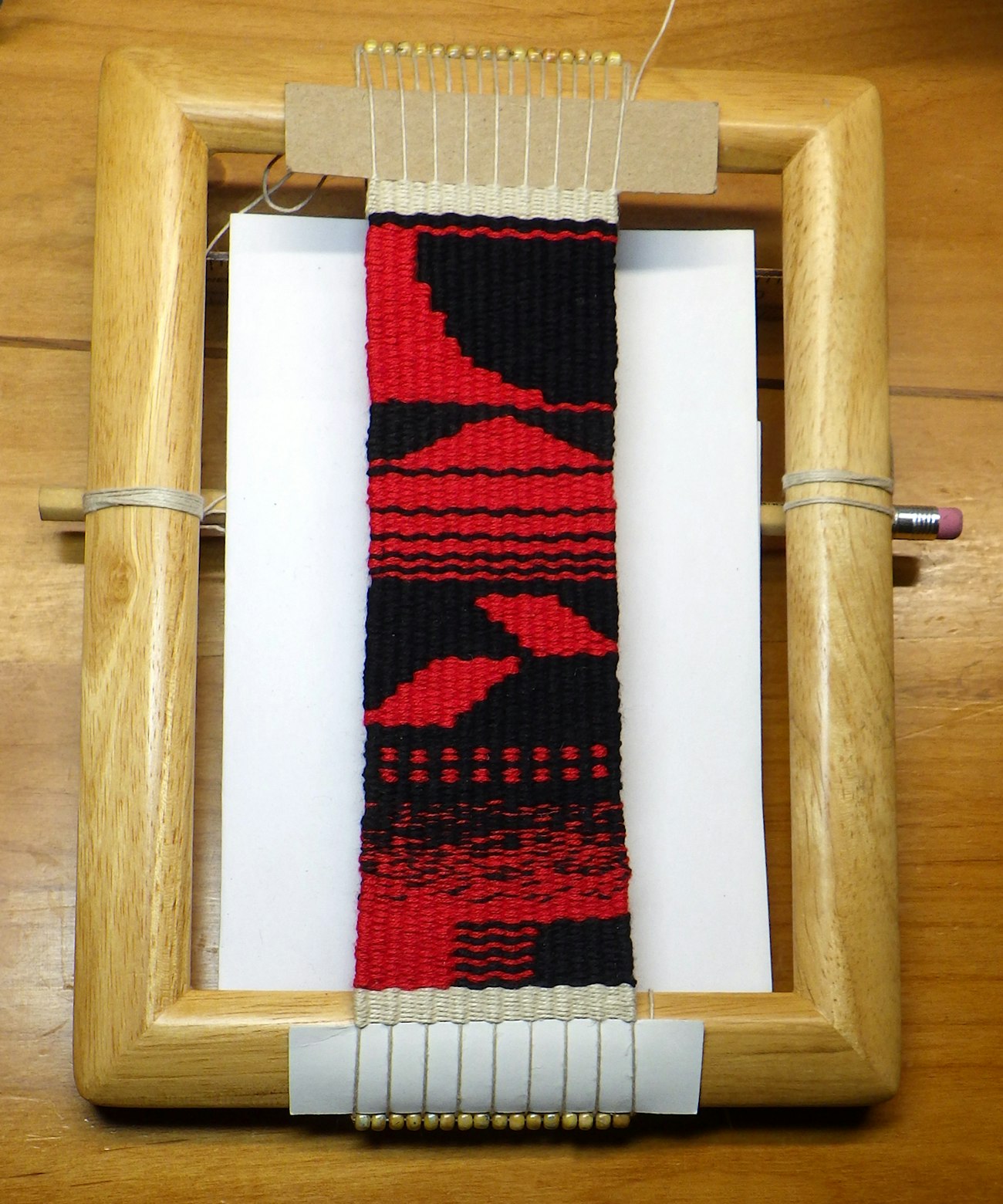 Alison’s travel loom and the first project she wove on it. Photos by Alison Irwin except where noted