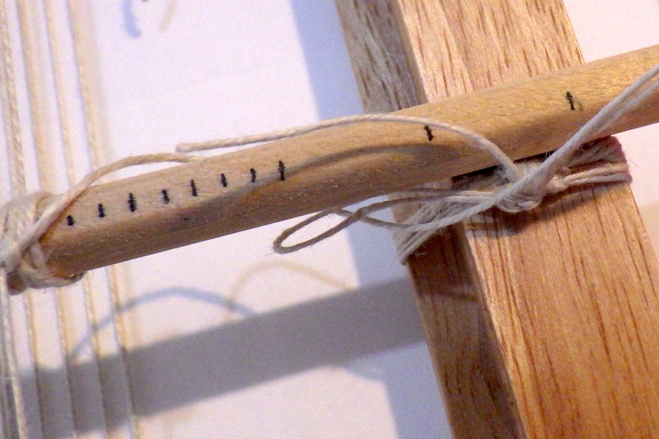 - Step 4. On the other side of the rod, tie a large knot under it, see photo above. The knot will anchor it in place while still allowing you to wrap threads around it as you dress the loom.