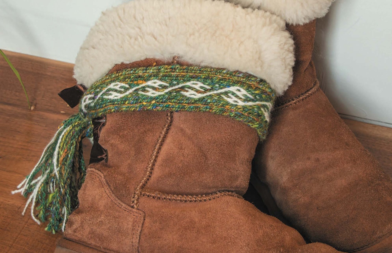 Julie Beers used all wool yarns for her tablet-woven Here Be Dragons boot bands. Photo by Matt Graves