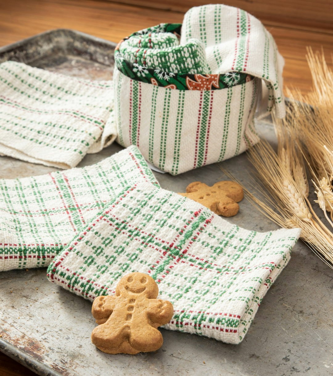 Malynda Allen’s Gingerbread Dishcloths and Small Woven Bin use a handwoven bin to showcase coordinating handwoven dishcloths. Photo by Matt Graves
