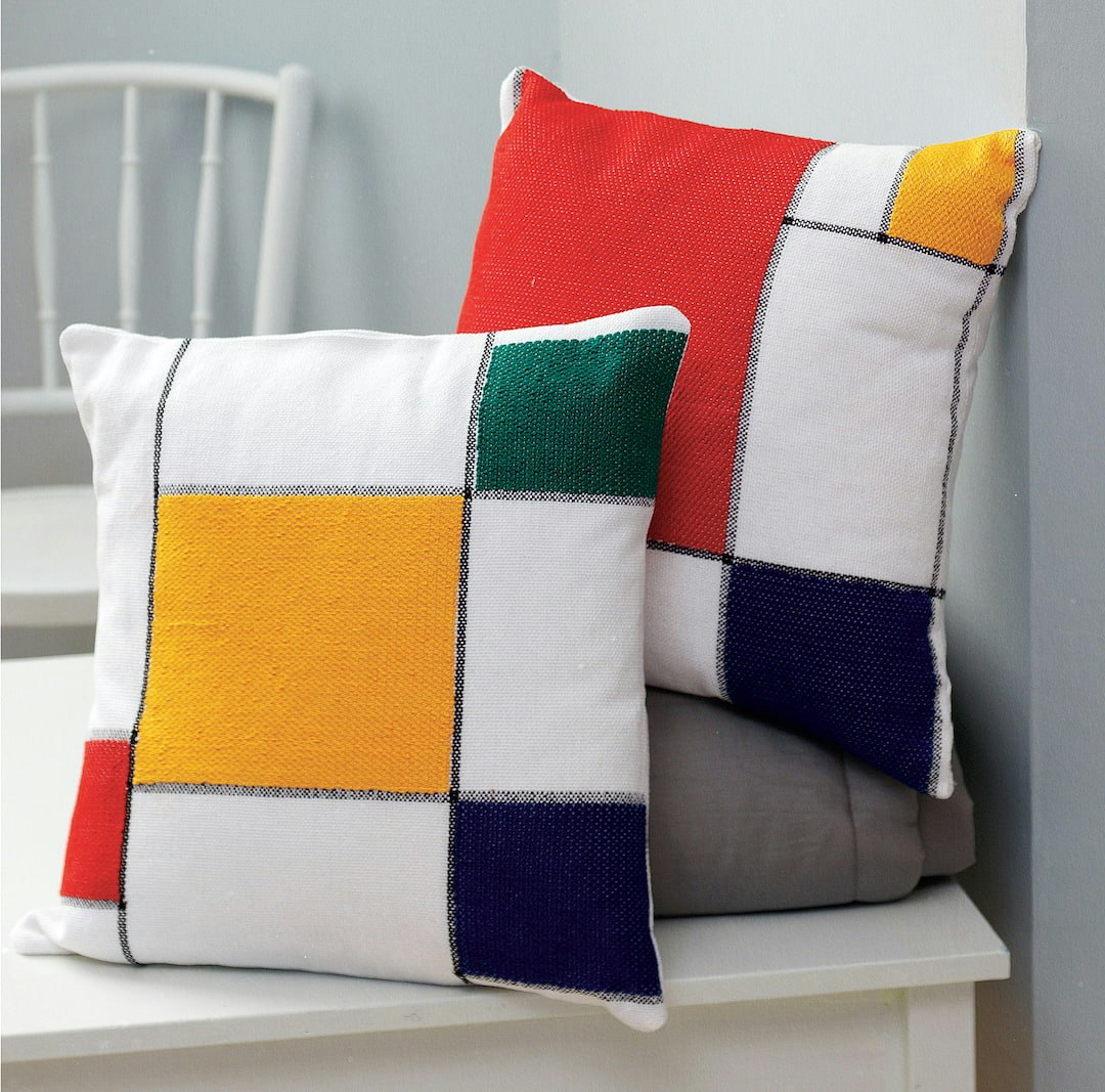 Although this pillow, Robin Lynde’s Mondrian in Moorman from Handwoven May/June 2013, was woven using a mutli-shaft, it’s a great example of art inspiring weaving. Photo credit: Joe Coca