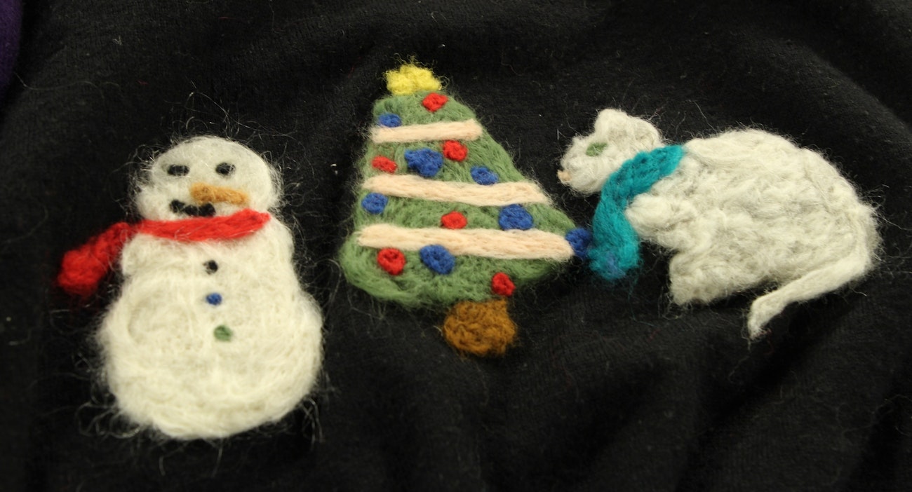 But what if you could combine the joy and nostalgia of the original sweaters with a fun fiber craft, all while also rescuing stained and holey sweaters? You can do just that with needlefelting!