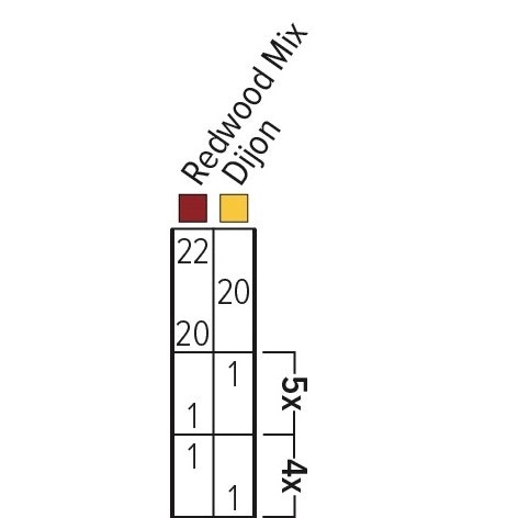 - 5 repeats of 1 end Dijon, 1 end Redwood Mix