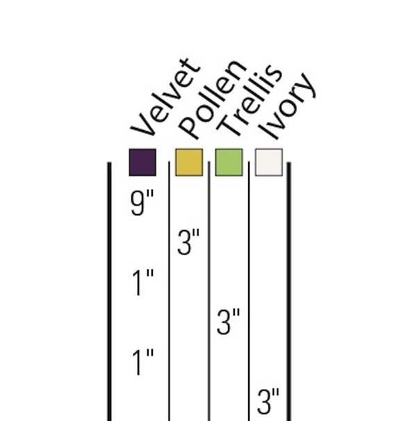 - 19 repeats of 1 end Velvet, 1 end Trellis