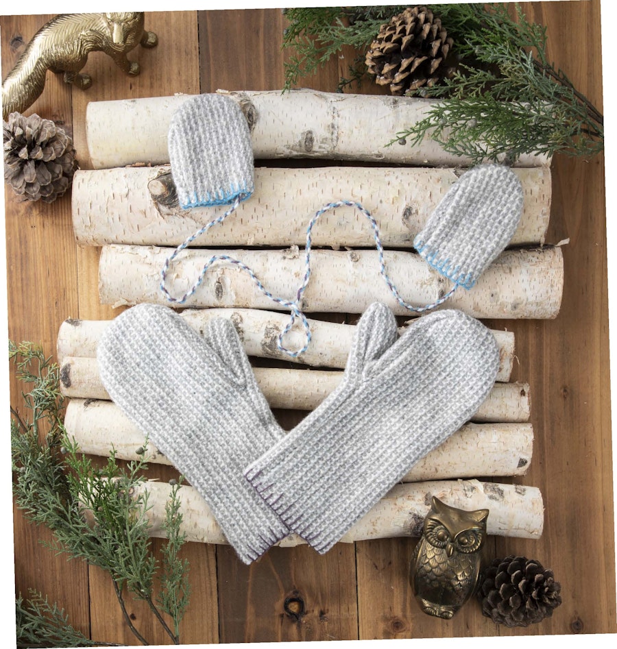 LoginYou may be familiar with the Ukrainian folk tale of how woodland animals found a warm resting place inside one lost mitten. Brittany and her family especially love the adaptation by Jan Brett. She designed this set of mittens so that an adult and small child could wear coordinating, cozy mittens for snowy walks—and with any luck, not lose them in the snow.