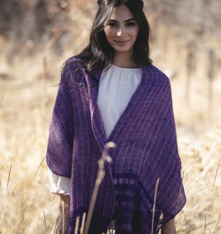 LoginDeep violet and lilac variegated yarns combine with leno lace to create a piece that mimics the crystalline structure of amethyst while also being soft and light.