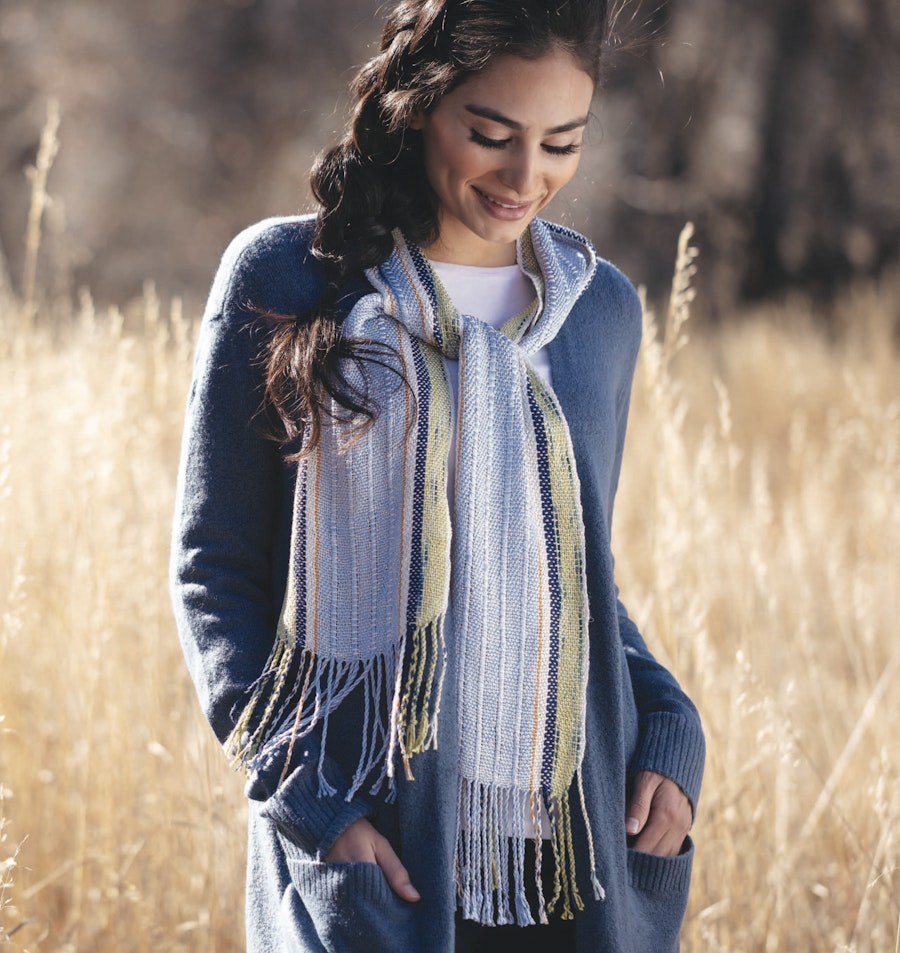 LoginCelebrate the elegant sea slug with a sumptuous silk scarf. Woven in plain weave with crammed dents, this striped and lightly textured scarf is a delight to weave and wear.