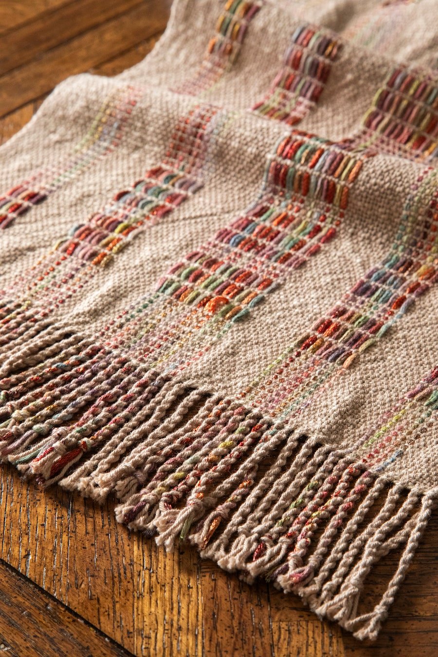 LoginDesigned using a Fibonacci series in both warp and weft, this contemporary runner is a colorful and elegant addition to any table. A hint of shine adds even more interest to this already beautiful piece.