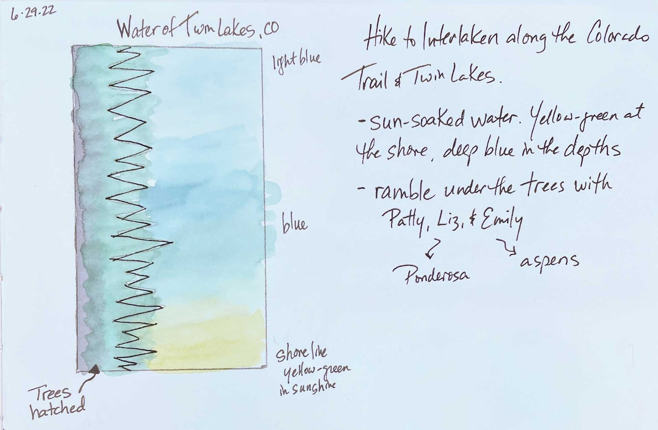 Inspiration for the Twin Lakes sketch tapestry included the walk in the woods and the color of the water below the trail.