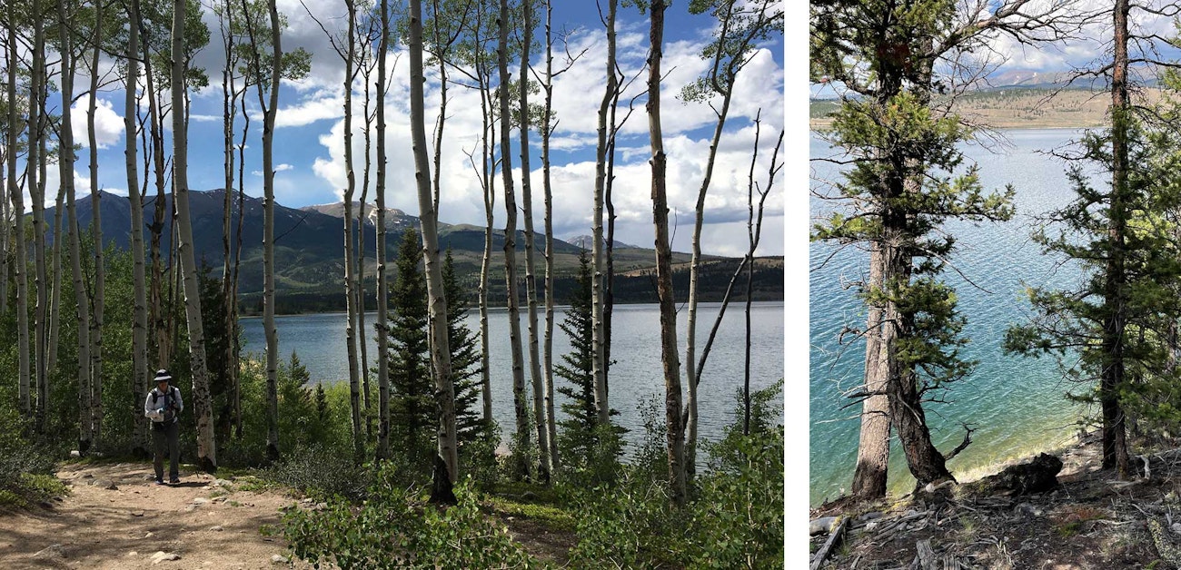 The example photos on page 19 are of a tapestry I wove after taking a hike along the shores of Twin Lakes in Colorado. Looking down at the lake’s edge from the trail, I was interested in how the color of the water went from yellow-green to deep blue as the lake got deeper. The other noteworthy piece of that hike was the joy of walking under a beautiful canopy of pine and aspen trees with friends. I wanted to remember the water color and the presence of the trees.