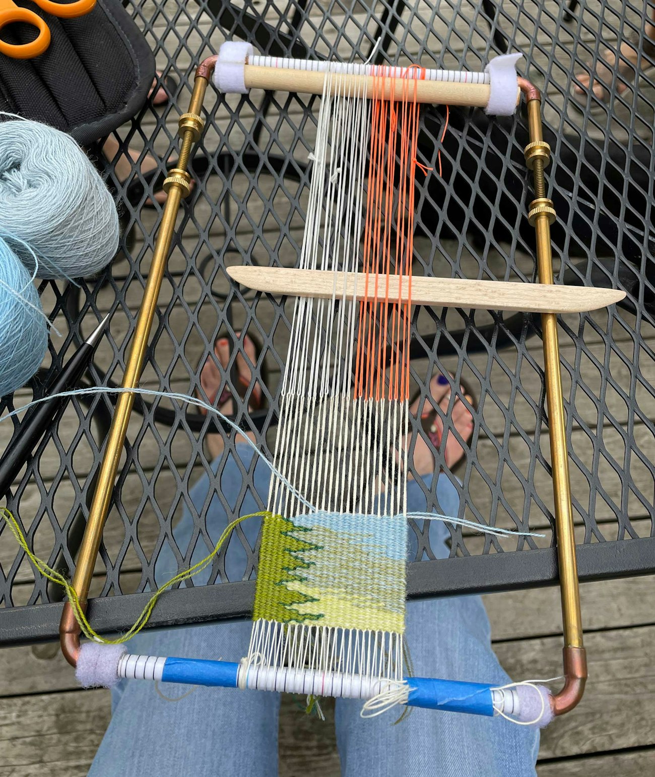 Rebecca wove the Twin Lakes tapestry on a small pipe loom after she got home from the hike.