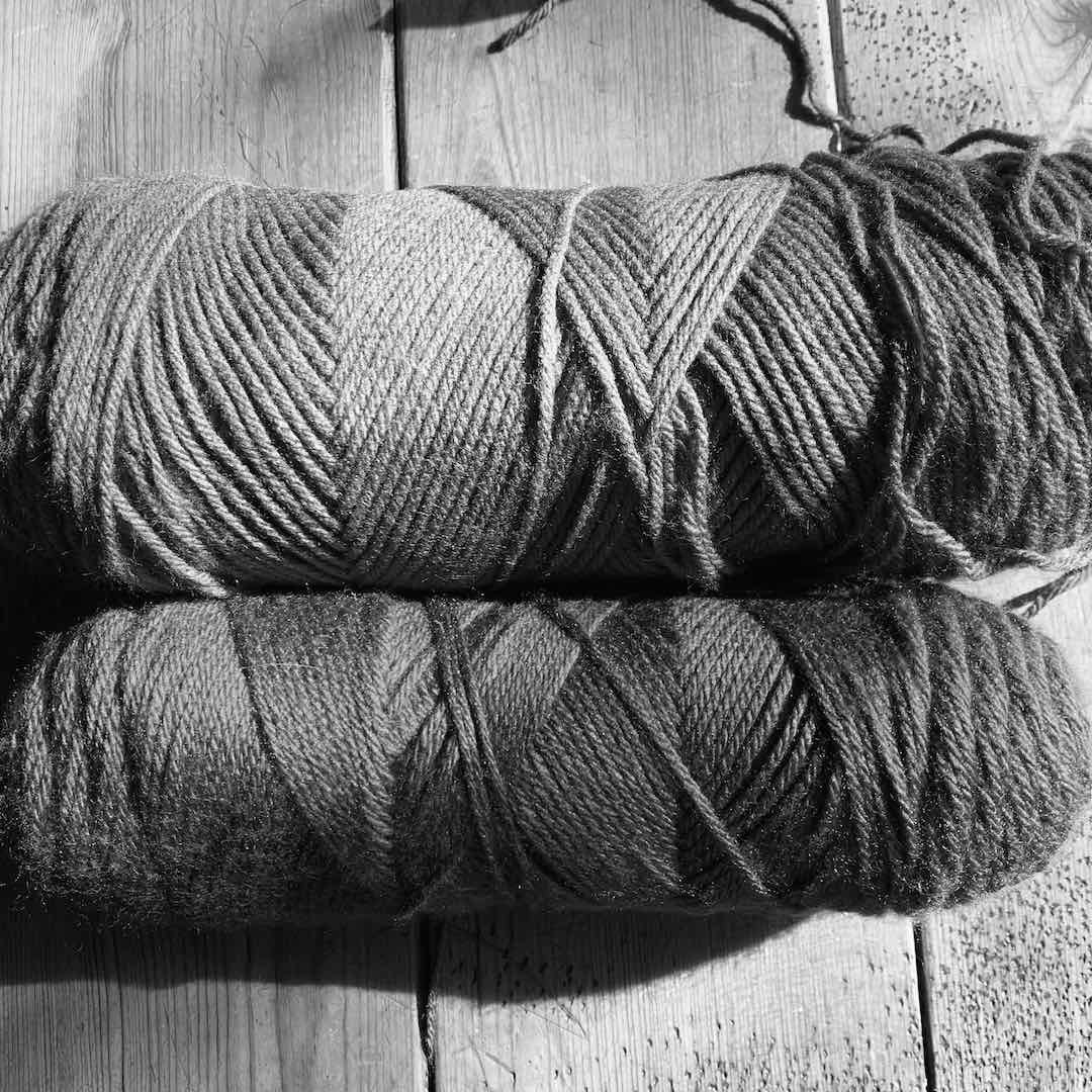 So how do you figure out whether or not two colors have different enough values? You use your smartphone! In the example below, I’ve put two put-ups of yarn next to one another. In color, they look great together and if I didn’t know better, I wouldn’t think twice about pairing them in a color-and-weave pattern. However, after snapping the original photo, I went into edit mode and turned it to gray scale, which you can see in the photo below. In that photo, the skeins are very similar shades of gray. This tells me that if I were to use these two yarns together in color-and-weave they’d blend a bit too well and the patterns wouldn't pop in the way that I want.