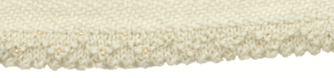 - Sew beads on some of the purl stitch bumps if desired. Sew bound-off edge to wrong side of handwoven fabric, covering the base of picked-up stitches.
