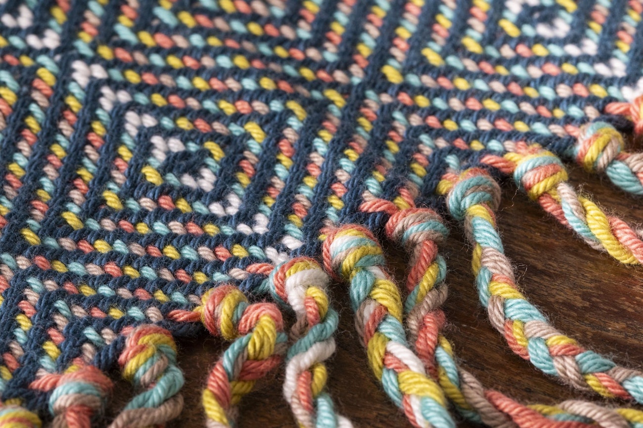While a knotted fringe will keep your piece from raveling, it won’t protect the fringe yarn from fraying. Twisted fringe doesn’t just look nice—it also secures your fringe so it will look nice and neat for years to come. You don’t have to always twist your fringe, but if you’re making an item with heavy use and want a longer life, fringe twisting is the best way to keep that fringe secure.