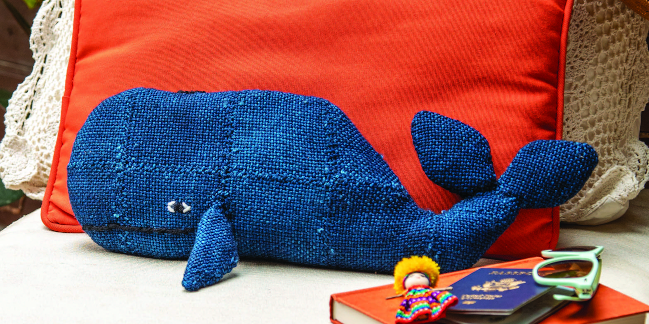 Of course, we can’t have a pin-loom eBook without some sort of stuffed-animal project. For that we’re featuring Margaret Stump’s Mystic Whale Pillow, a playful pillow that can also double as a stuffed friend.