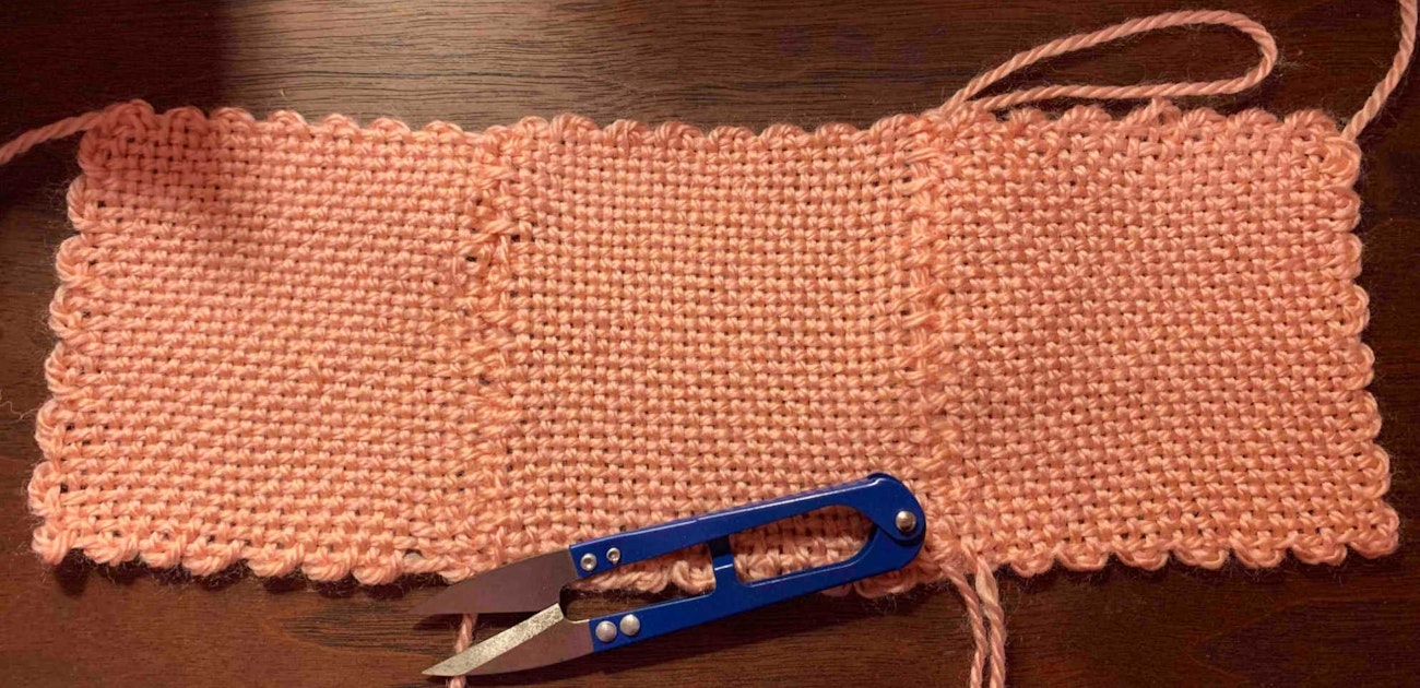 After joining the pin-loom squares together Christina shaped them into a tube.