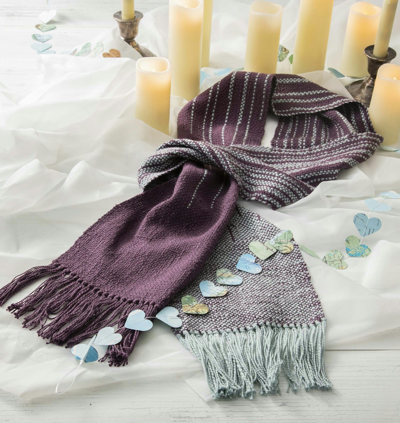 The issue also includes projects inspired by new-to-me tales, including that of the cow herdsman and the weaver, a Korean folk tale. To represent the literally star-crossed lovers of the title, designer Sun Kim clasped contrasting shades of cotton slub in the warp. The result is a beautiful scarf, perfect for dressing up an outfit for keeping warm on cool evenings.
