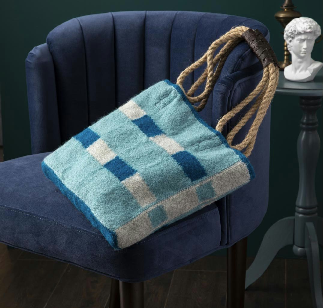 Meg Stump’s bag uses two different pin-loom shapes that are joined and then wet-finished and fulled until the fabric becomes thick and sturdy. The bag is easy to weave and construct—and will last you for ages. It’s also absolutely beautiful!