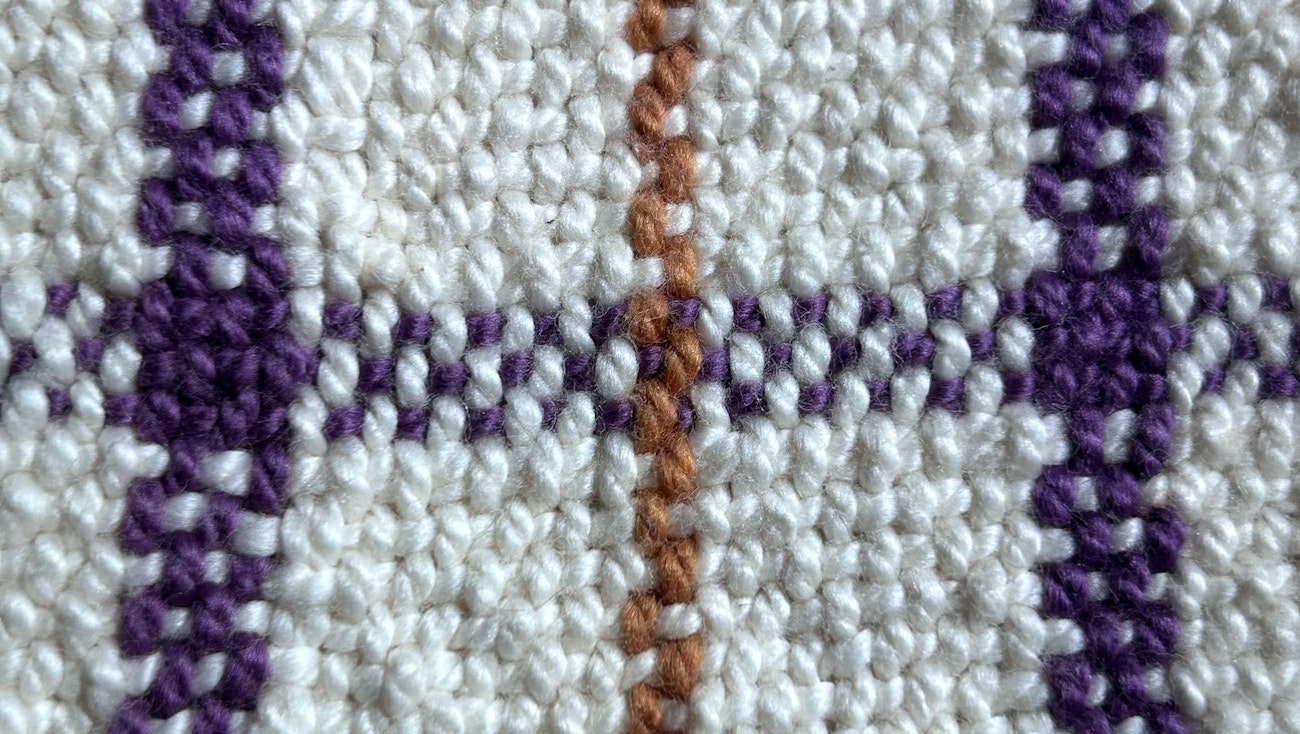 After wet-finishing, the fix-it threads Christina needle wove over the unwanted floats have all but disappeared.