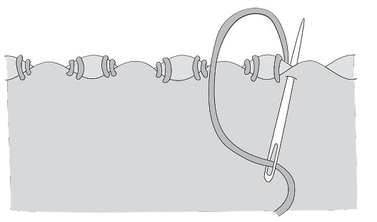 Backstitching provides stability to your seam by doubling back with every stitch. Before you start backstitching, it can help to do a loop-de-loop with your needle-holding hand in the air to get a feel for the movement. This is essentially what you’ll be doing with your thread. If you’re stitching from right to left, stitch as follows: Pull the needle completely through the fabric going from the bottom to the top. Reenter the top of the fabric to the right of the original entry point and pull the needle through the fabric. Position the needle so it will enter one stitch length to the left of the original entry point, pull it through, and continue in this manner for the rest of the seam from right to left.