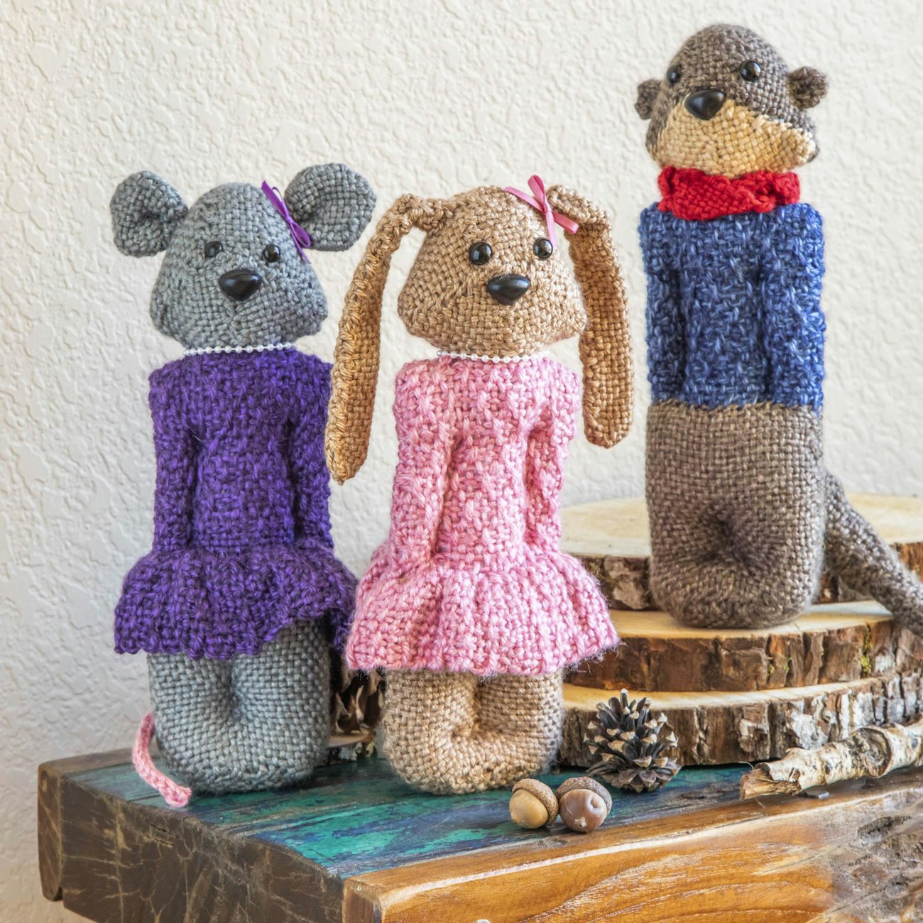 - Visit the Little Looms library to get the PDF project download for the Subscriber Exclusive Timeberland Townies: Mouse, Bunny, and Otter.