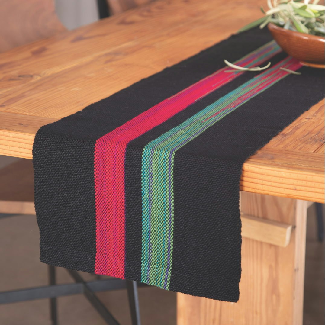 Autumn has finally arrived in my little part of New Mexico. The days are noticeably cooler, which means I’ve had the opportunity to go on a lunchtime walk or two. I always keep my eye out for prickly pear this time of year because the fruits, also known as tuna, turn deep, dark purple. Seeing the prickly pears this year, I was reminded of a project we had back in the Summer 2020 issue, the gorgeous Tunas in the Night runner by Mariellen Boss. I realized for the first time that this runner, though it might not appear so at first glance, is a fall-themed project.