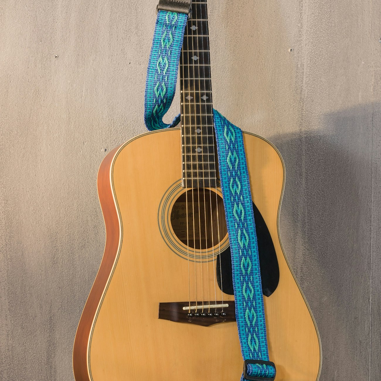This wide band features a pick-up warp float pattern inspired by Norwegian designs, and the possibilities for its use extend beyond guitar strap.