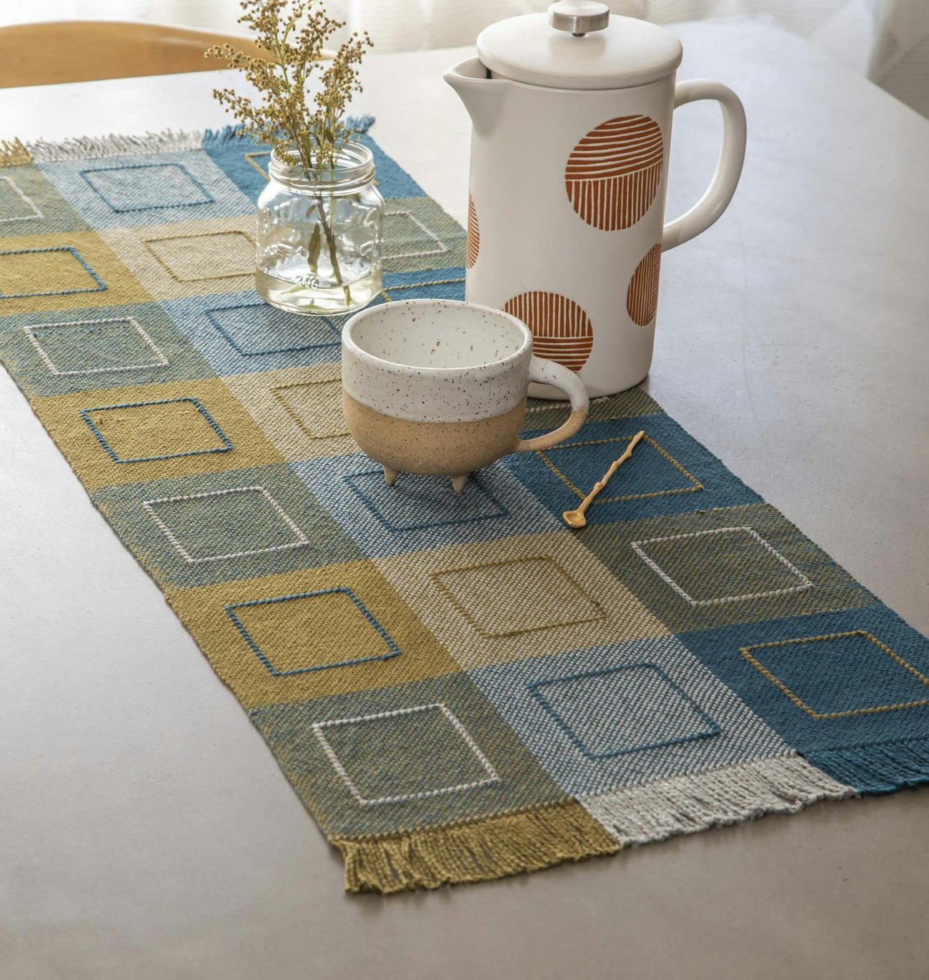 A few years ago, when I was working primarily on Handwoven, we had an issue themed around circles and curves. The idea was to challenge weavers—circles and curves aren’t all that easy to put into a woven design; they often require hand-manipulation, deflection, and, usually, a good amount of sampling. The issue was beautiful, and I loved the unique ways each designer chose to showcase the theme, but for the Spring 2024 issue of Easy Weaving with Little Looms, I wanted to do the opposite. And so, the “Hip to Be Square” issue was born.